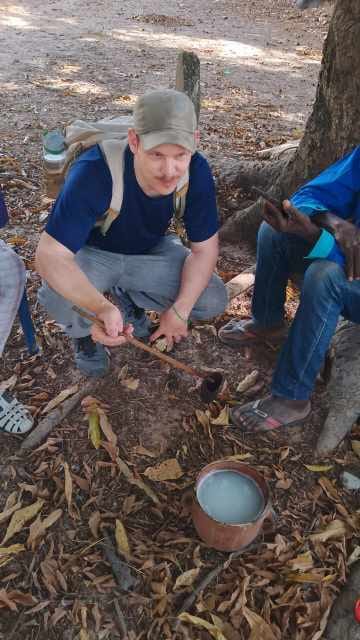 Pero no me conformo con Ziguinchor. Necesito entender más. Me adentro hasta Oussouye, corazón del territorio diola. Voy a visitar a Pierre, que gestiona un campamento, y me presenta a Pierro. Una de las personas más sorprendentes que he conocido en todo el viaje. Antiguo luchador, hoy se dedica a ser embajador de la cultura diola y de la naturaleza que la rodea.