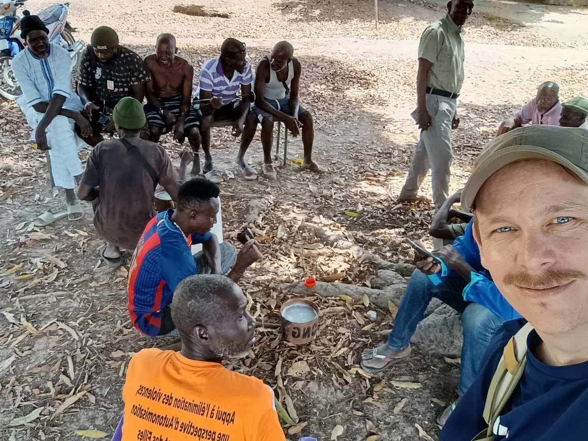 Tras varios días junto a la costa, me adentro en el país, pasando por Tiaouvare, Fatick y después Sokone. Allí, BINGO: la señora de la foto de portada ha creado un espacio maravilloso para acoger viajeros y personas que necesitan ayuda. Lo construyó junto a su marido, fallecido hace poco. Ella continúa con una fuerza y un optimismo que impresionan. Desde allí sigo hacia Gambia. No me quedo mucho tiempo. La primera reunión en la universidad no pudo realizarse. El ritmo aquí es distinto. Lo entiendo. No puedo imponer el tempo de mi expedición. Espero volver la semana próxima.