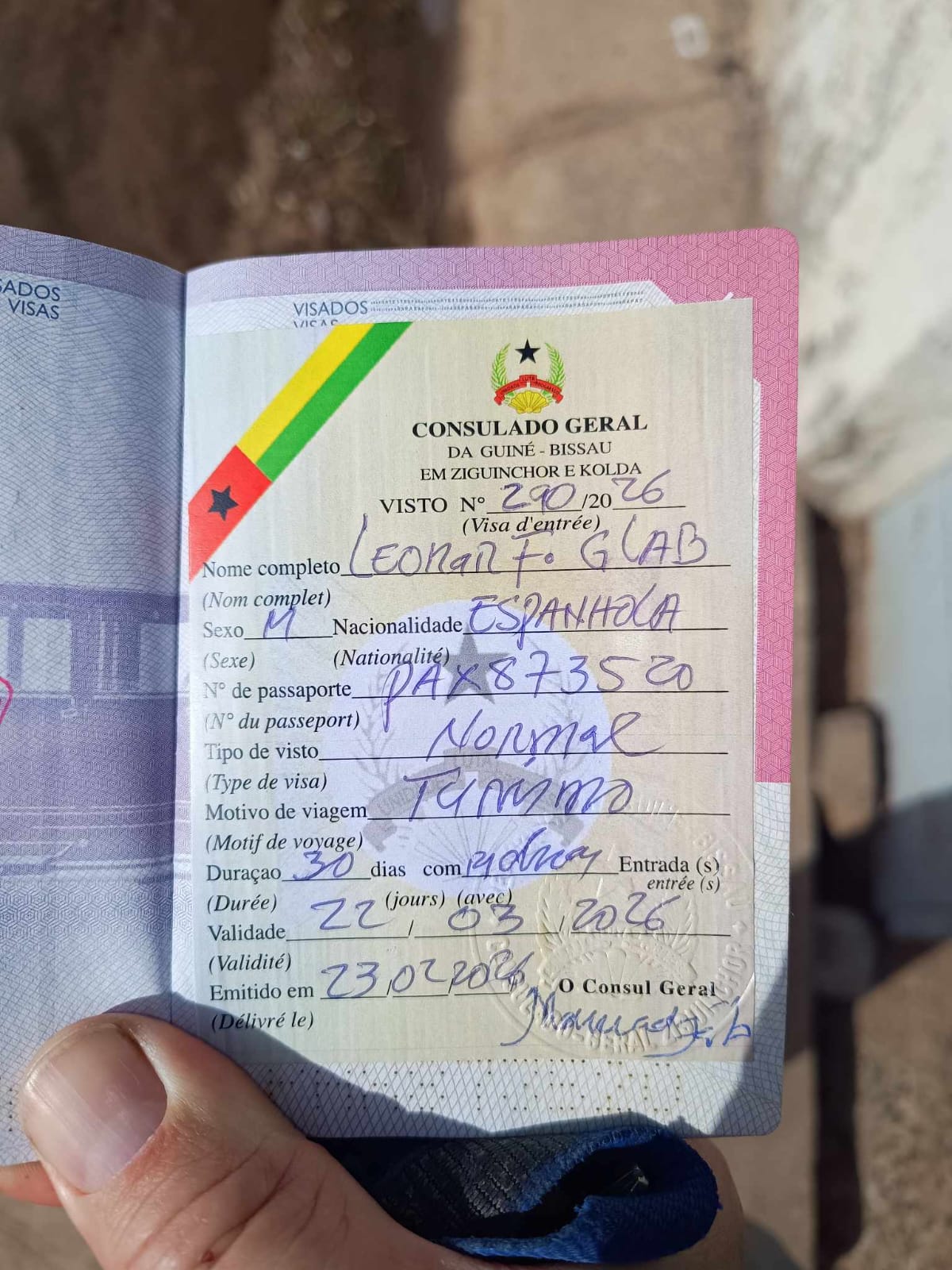 Regreso a Ziguinchor para preparar el cruce hacia Guinea Bissau. El cónsul, un personaje ágil e interesante, me concede la visa en menos de diez minutos. Aleluya.