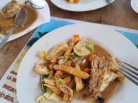A pesar del calor, estoy bien y con energía. Mucha fruta, mucha agua, pescado y verduras locales, y de vez en cuando un preparado de electrolitos que el médico me recomendó antes de salir. La comida es ligera y sabrosa, lo cual ayuda mucho. Incluso he tenido ganas y tiempo de cocinar una paellita. La nevera funciona al límite, igual que la batería. La placa solar hace lo que puede y suministra lo justo para mantener el sistema operativo. Me ha sorprendido comprobar que los precios en Senegal son muy similares a los de Europa. Eso pesa, o mejor dicho, aligera el monedero.