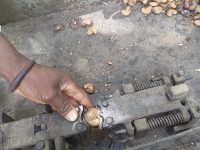 Me muestra cómo viven, la cultura diola en su esencia. Compartimos vino de palma con una cuchara de madera de un solo recipiente, con el consejo ceremonial (10 ancianos), me invitan a quedarme más tiempo celebrando ( Sin vino de palma no hay ceremonia) , pero me viene en mente “Don’t drink and drive” y Pierro ya me quiere explicar más cosas,..y nos vamos andando.