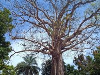 Pierro no solo conoce a fondo los fetiches y las costumbres de su cultura; también domina el entorno botanico. Sabe de flora y fauna con una precisión admirable. En el centro del pueblo me presenta a la Ceiba. Cuarenta metros de altura y tres metros y medio de diámetro de tronco. Lo que más me impresiona no es su tamaño, sino su carácter: es un árbol que permite que otros crezcan junto a él sin eclipsarlos. Por eso lo llaman el árbol generoso.