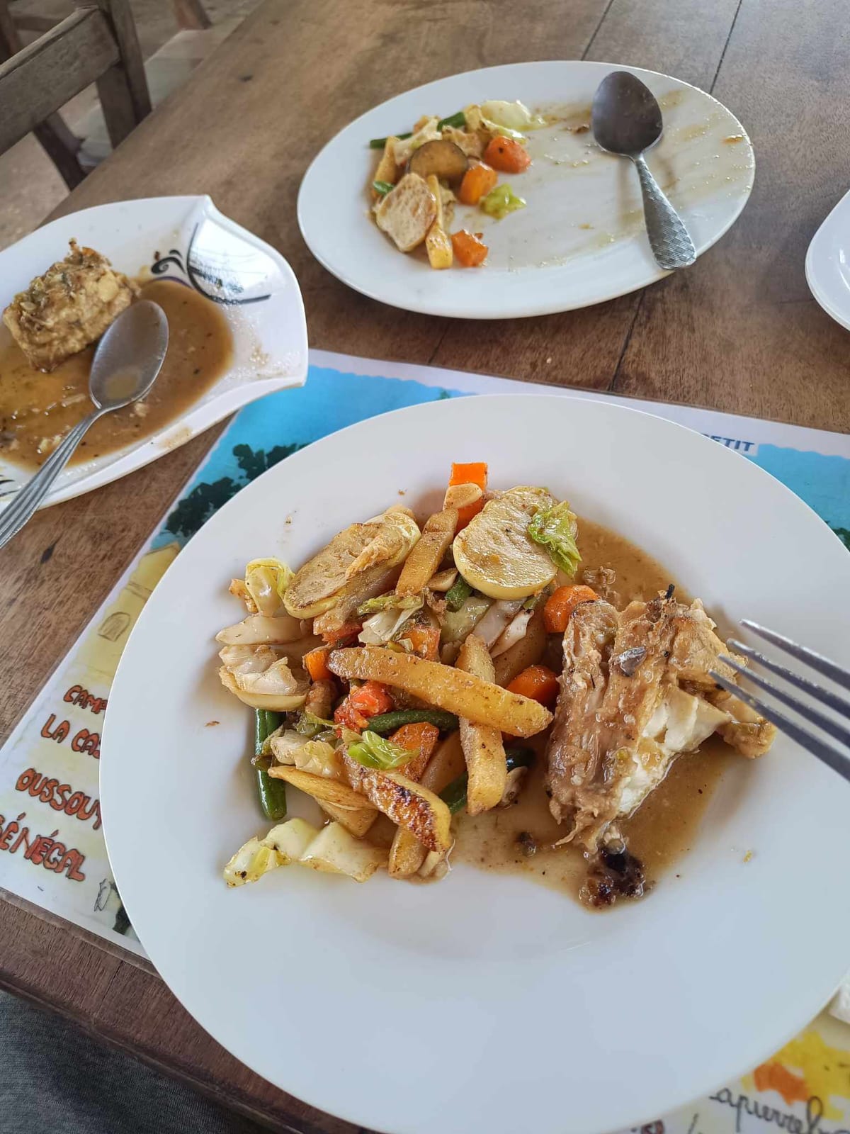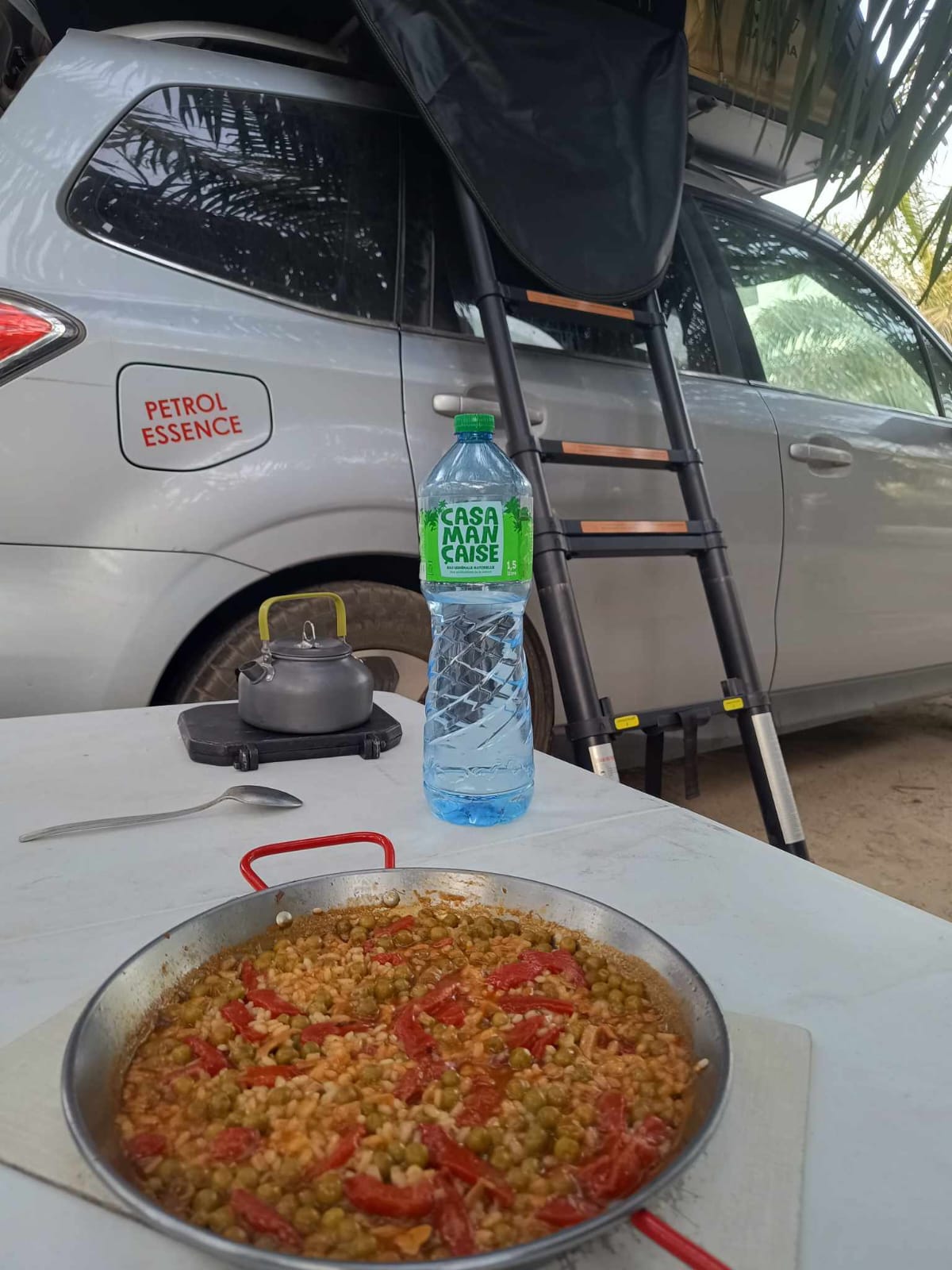 A pesar del calor, estoy bien y con energía. Mucha fruta, mucha agua, pescado y verduras locales, y de vez en cuando un preparado de electrolitos que el médico me recomendó antes de salir. La comida es ligera y sabrosa, lo cual ayuda mucho. Incluso he tenido ganas y tiempo de cocinar una paellita. La nevera funciona al límite, igual que la batería. La placa solar hace lo que puede y suministra lo justo para mantener el sistema operativo. Me ha sorprendido comprobar que los precios en Senegal son muy similares a los de Europa. Eso pesa, o mejor dicho, aligera el monedero.