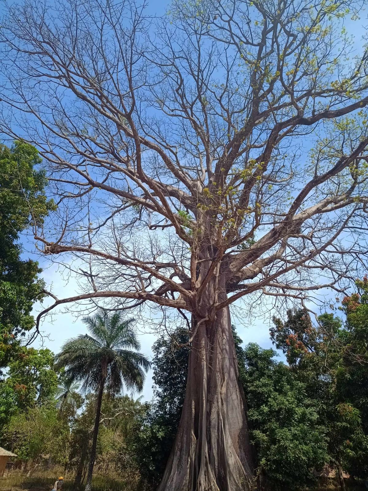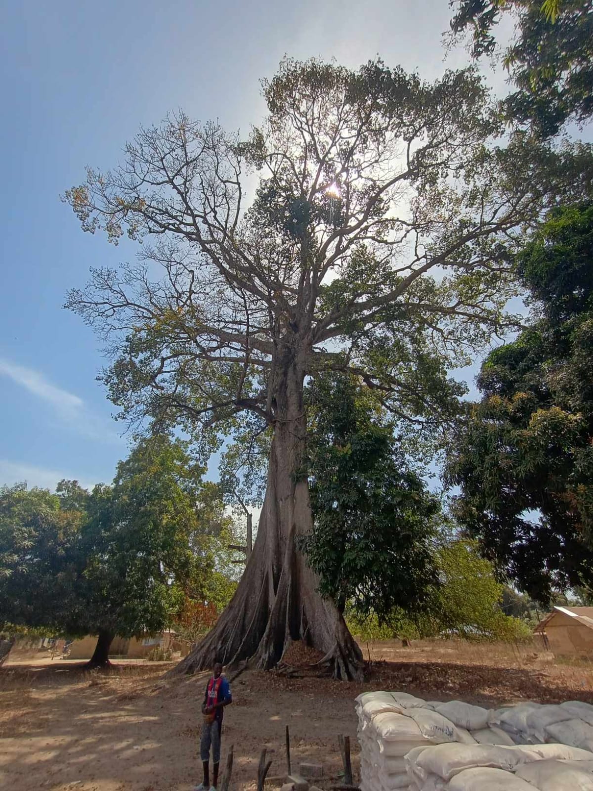 Pierro no solo conoce a fondo los fetiches y las costumbres de su cultura; también domina el entorno botanico. Sabe de flora y fauna con una precisión admirable. En el centro del pueblo me presenta a la Ceiba. Cuarenta metros de altura y tres metros y medio de diámetro de tronco. Lo que más me impresiona no es su tamaño, sino su carácter: es un árbol que permite que otros crezcan junto a él sin eclipsarlos. Por eso lo llaman el árbol generoso.