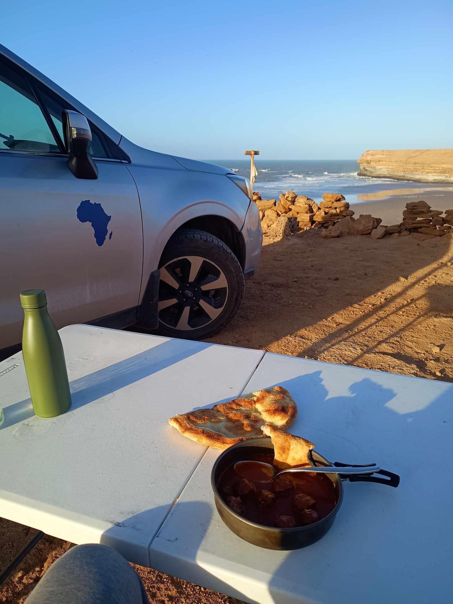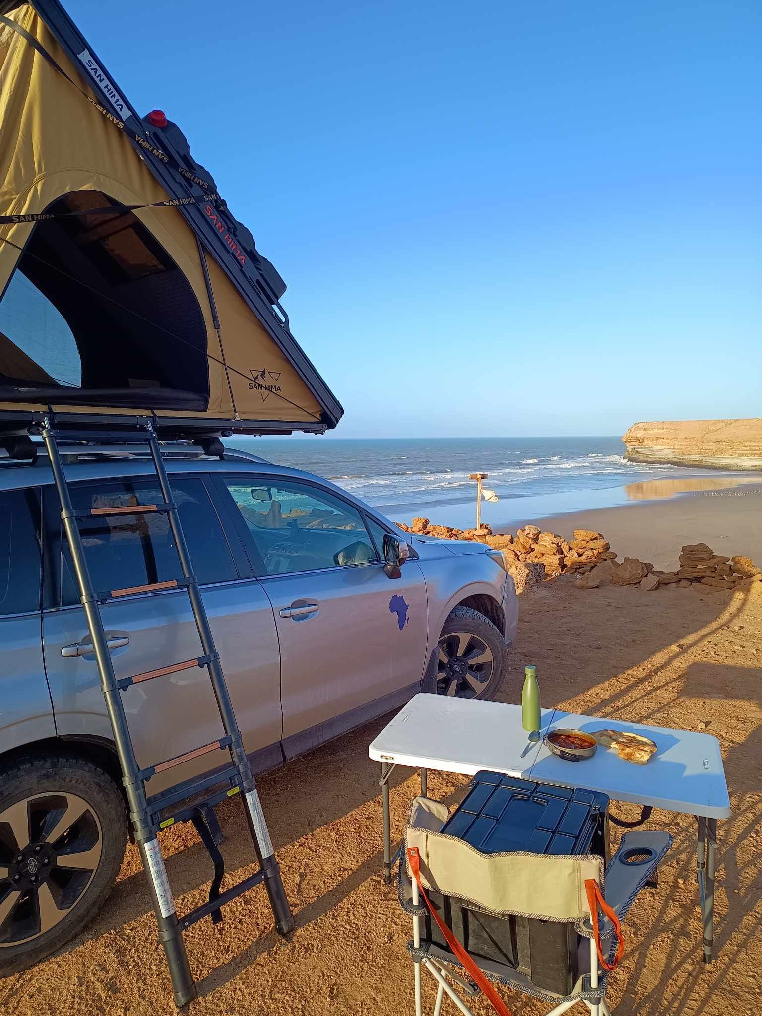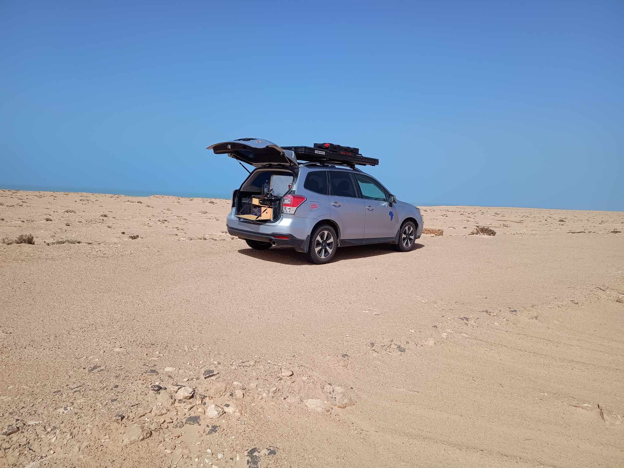 Casi cada día, entre las 9 y las 10 de la noche, ya estoy durmiendo porque las jornadas son demasiado intensas y ocupadas. Siempre hay algo que hacer, quedar con alguien, desplazarme, comprar comida, reparar o limpiar algo en el vehículo, planificar la ruta o volver a planificarla, buscar agua o la próxima gasolinera, encontrar un sitio seguro para dormir, secar la tienda, cocinar, documentar observaciones y vivencias del día o simplemente intentar localizar algo que no sé dónde lo he guardado en el coche 🙂.
